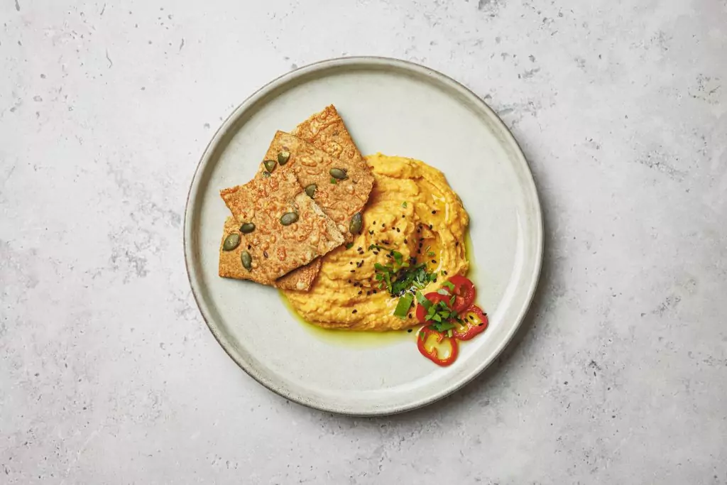 Sweet potato/chickpeas/tahini/garlic/lime juice/extra virgin olive oil/coconut oil/curry powder/chilli/sea salt/spring water