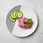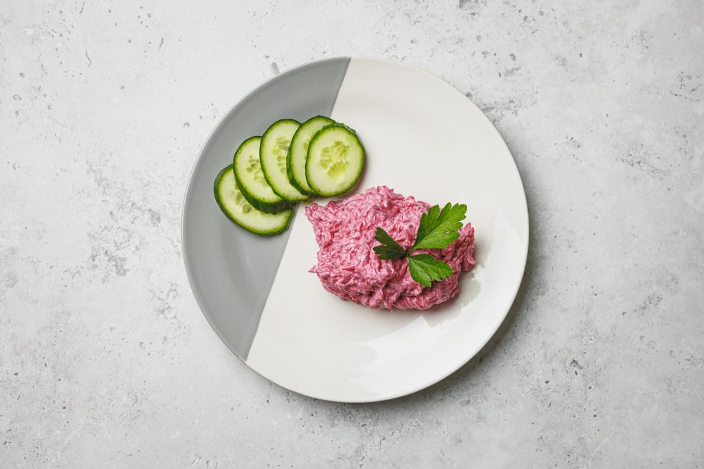 Who thought switching cucumbers to beetroot would make such a tasty jump. Thick creamy Greek yoghurt and shredded beetroot with a minty kick.